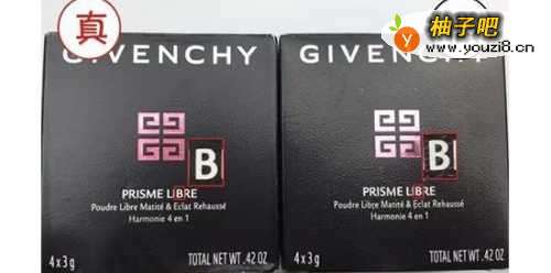 把外包装盒打开后的,打开一面的盒子里有开罐说明,其中有个很小的细节,在正品的粉扑上有GIVENCHY的字样,而假货就是空着的,仿的一点都都不用心。
