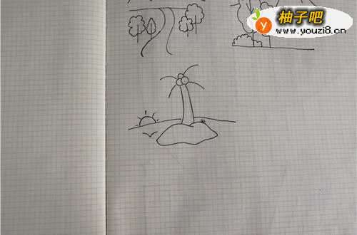 3第三幅是海边的景象,有海鸟,有椰子树。
