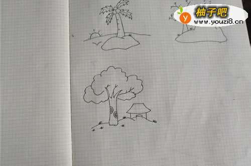 5我们再画一幅,一棵大树,还有树下面的一座小房子。