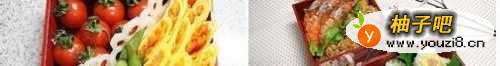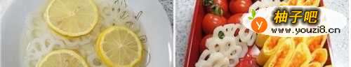 22、便当盒内放小西红柿,藕片摆放到鸡蛋和西红柿中间.