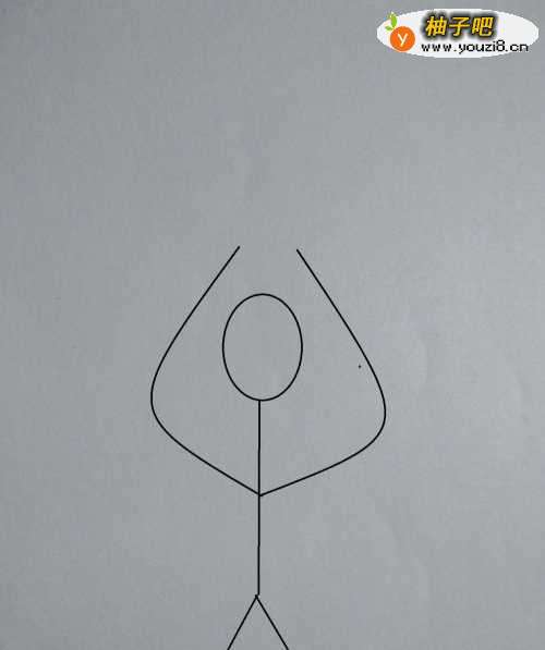 3接下来继续画出上举的双臂,画到头部上方即可。