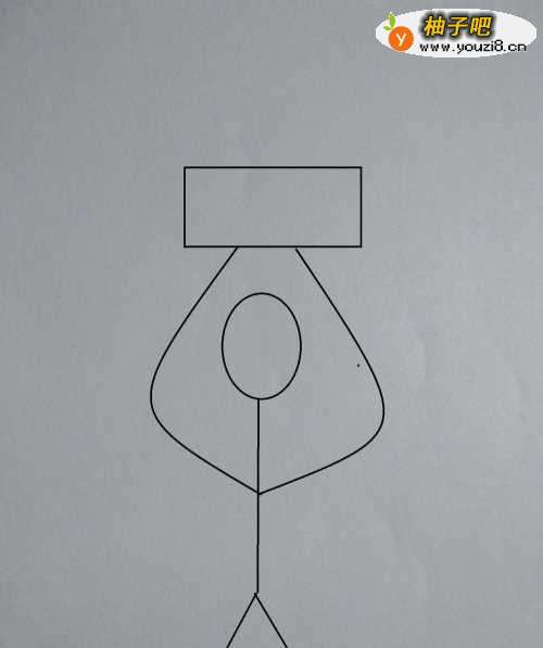 2然后在脑袋下面画出一条直线为身体,然后画出两条八字的双腿。