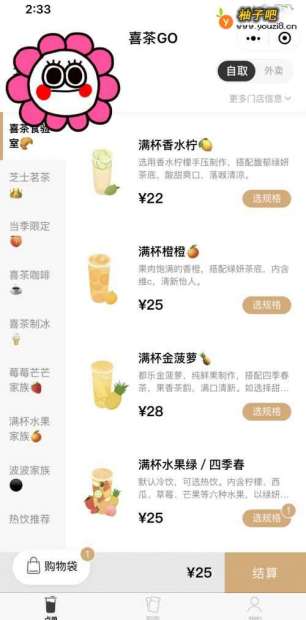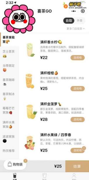 2进入之后,就是你可以选择的各种的喜茶的品质了,左边是类型,右边是不同的口味。