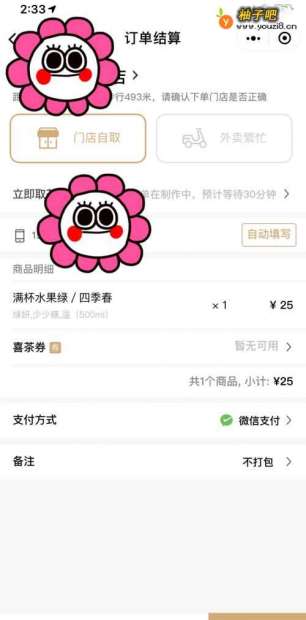 5我们在这里,就可以看到自己前面有多少笔喜茶的订单,大概需要等待多久了。如果有优惠劵,也可以在这里选上。
