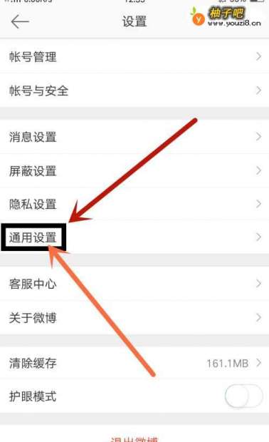 4接着在微博设置页面,在继续点击打开“通用设置”,如图所示