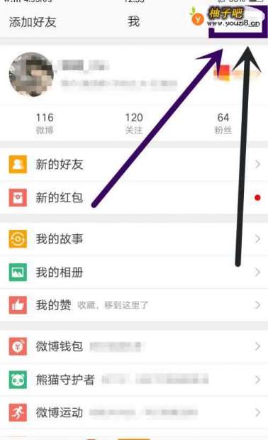 3在我的界面中,点击进入右上角微博“设置”,如图所示