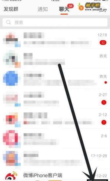 2进入微博聊天界面,然后点击页面下方菜单进入“我的”,如图所示
