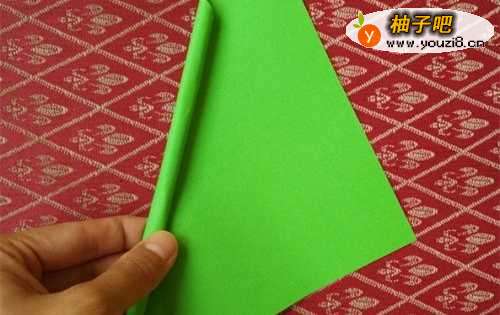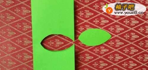 5拿一张绿色纸对折,剪出叶子的形状。
