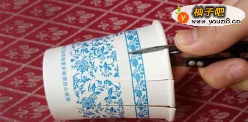 2用剪刀沿着杯口往下剪小条子,宽约为1cm。