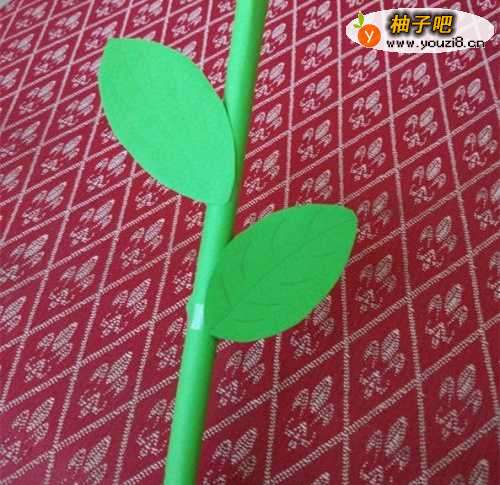 7拿双面胶把叶子粘在花茎上。