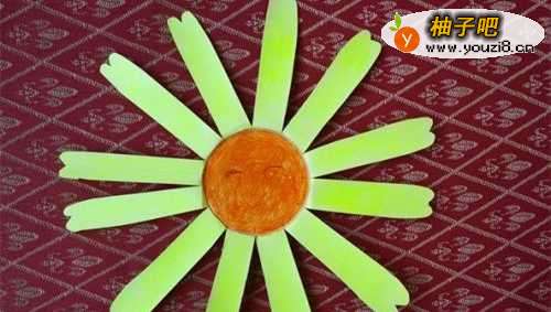 4然后就是给花儿涂成自已喜欢的颜色,花蕊里还可以画个笑脸哦。