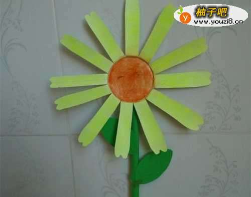 8再双面胶把花茎粘在花朵后面,漂亮可爱的花儿就出来了。