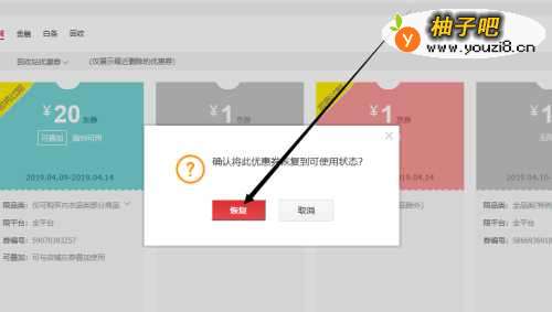 5在弹出的提示框中,我们点击【确定】按钮,即可成功恢复已删除的优惠券。