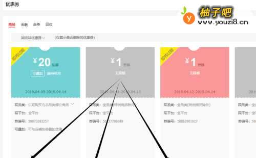 4在回收站优惠券界面中,可以看到我们已删除的优惠券。找到我们想恢复的优惠券,然后点击左下角的“撤回优惠券”字样。