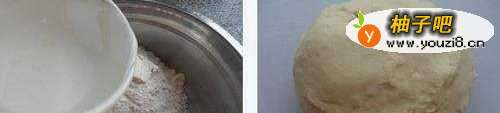 普通面粉放入盆中,一半面粉用开水和;一半面粉用冷水和,然后把两块面团揉在一起,如果面团比较粘手的话,可以倒入少量的食用油,把面团揉光滑,静止10分钟。