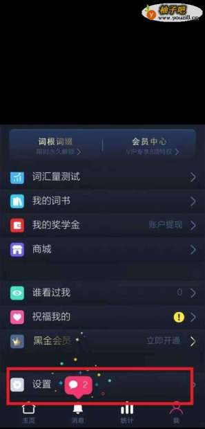 手机打开背词达人软件,点击右下角我的,设置项目。