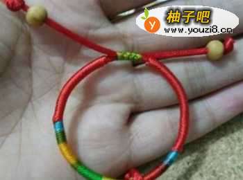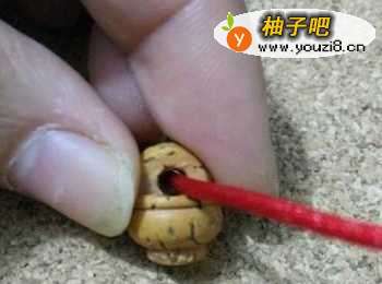 10最好穿上两颗桃木珠,打结固定好就可以了。