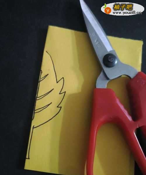5第五步,用剪刀把画好的树叶子部分裁剪出来。