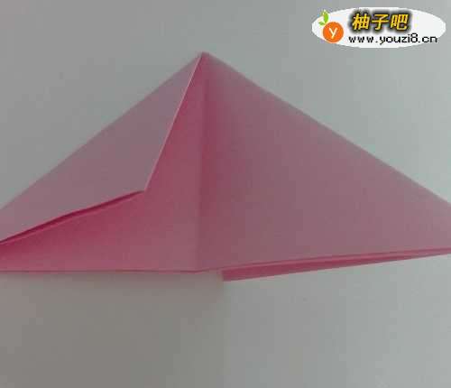 4把折好的三角形面合起来,向下图对折成两个三角形。(如下图)