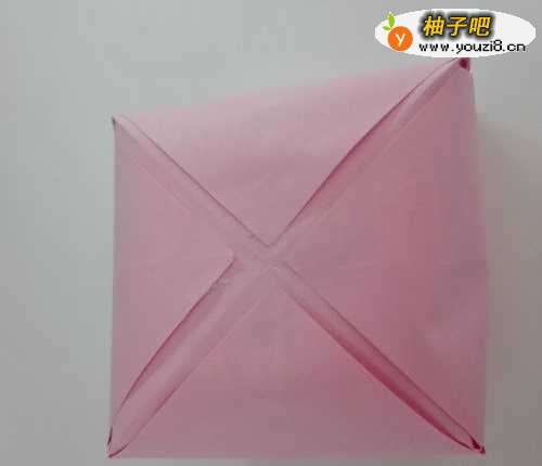 2手抻进去把纸撑成正方形。(如下图)