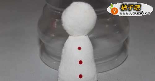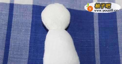 2把雪人头部的布料缝起来,然后塞上棉花,收口。