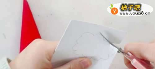 3接下来便是卷出圣诞老人脸部的轮廓,用波浪线剪除