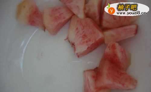 2牛奶晾凉,放入两个鸡蛋黄,搅拌匀。(如果家里有淡奶油和炼乳也可以放一些哦,味道更浓更好吃)