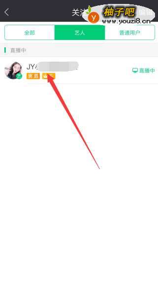 4点击进入查看关注的具体信息,可以看到,刚才的主播在里面了,可以看到主播的状态是在直播中。
