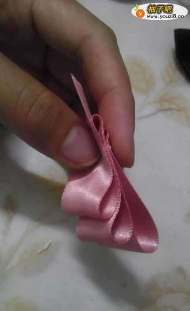 2取一小段丝带折出层次感,可以用双面胶固定位置