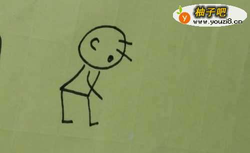3然后我们再给小男孩画上身体还有胳膊,向下弯着