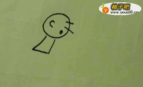 5然后我们再给小女孩画上眼睛,嘴巴,并往下画上身体还有胳膊