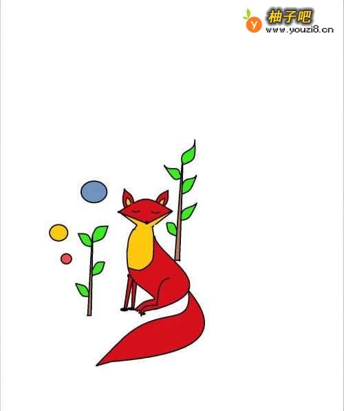 7最后把小狐狸和小树涂上喜欢的颜色,这样就OK了,是不是很简单很可爱呢。
