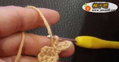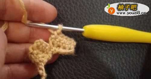 8再拉3个辫子针,然后在3行的短针边缘钩织3个引拔针后,再拉2个辫子针,抽线断线。