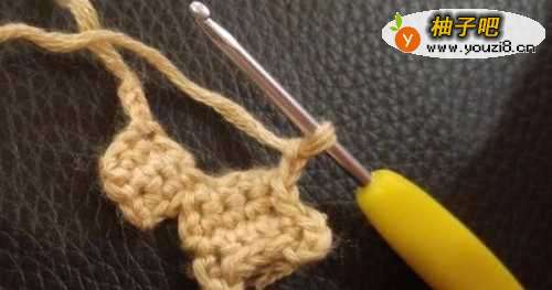 2返回在倒数第2针的半个针目里开始顺次钩织3个短针,那么起针还余下2针始不钩织的哦。