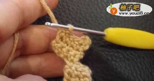 3然后翻过来进行钩织,钩织2行不加不减的3个短针。