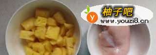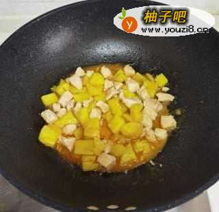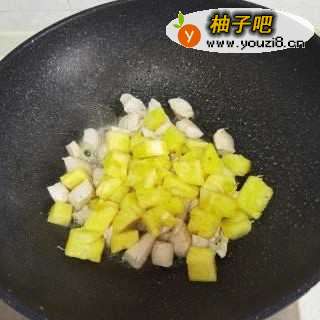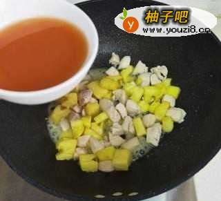 10将菠萝块放进去翻炒几下。