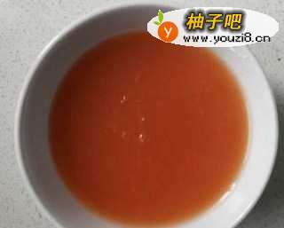 8取一小碗,里面加白糖、玉米淀粉、西红柿酱和清水调个料汁。