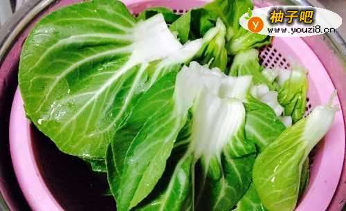 首先将小青菜去根,掰开来一片片的洗干净沥干水分切成小段备用。
