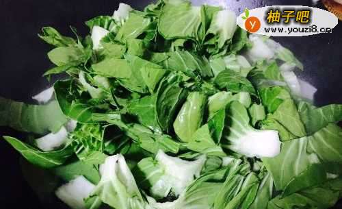 6水再次烧开之后即可把切成段的小青菜倒进去,继续大火烧开,大约1分钟左右即可。