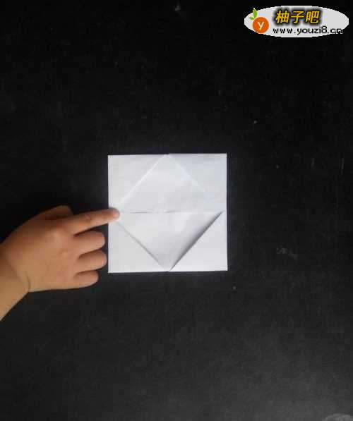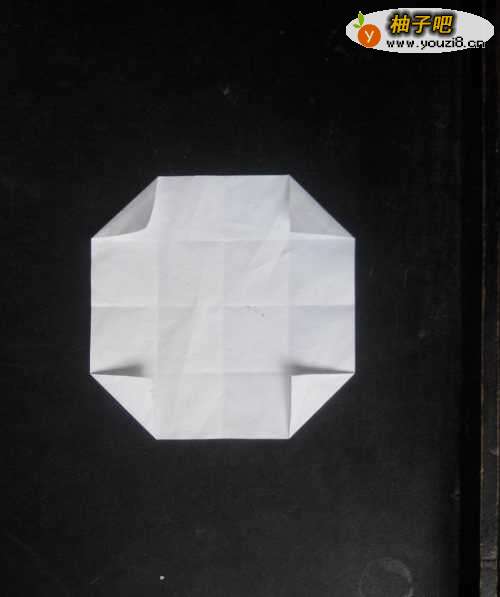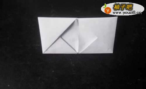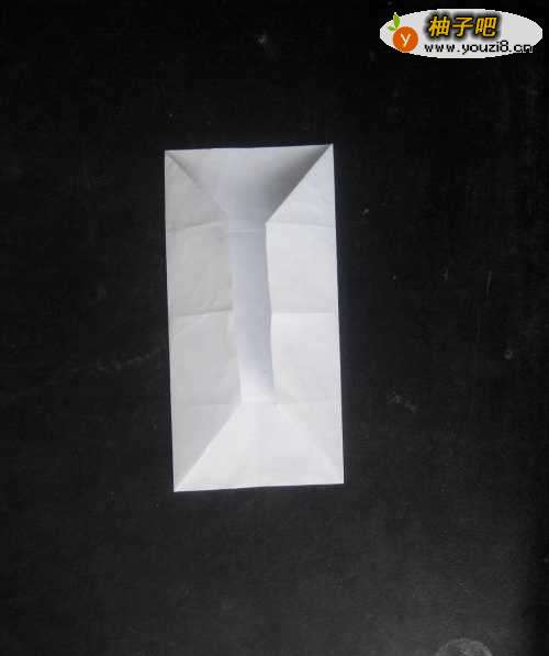 2然后再对准中心线折叠,另一边同样折叠,换个面,同样的方法折叠,(看图)