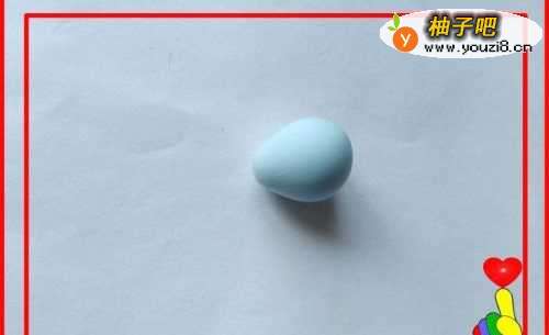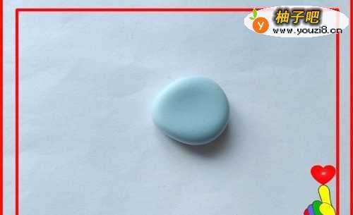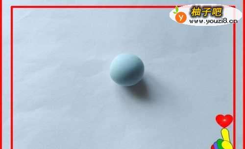 取出天蓝色彩泥适量,滚搓成一个小圆球。