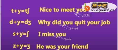 4you也是英语高频词,它既可以做主语也可以是宾语,所以y的变音一定要掌握。以/t//d//s//z/结尾的单词后面接字母y开头的单词,会产生连读。如下图: