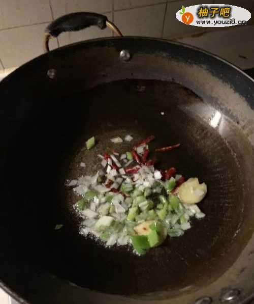 3开火倒油,放入葱姜辣椒爆香