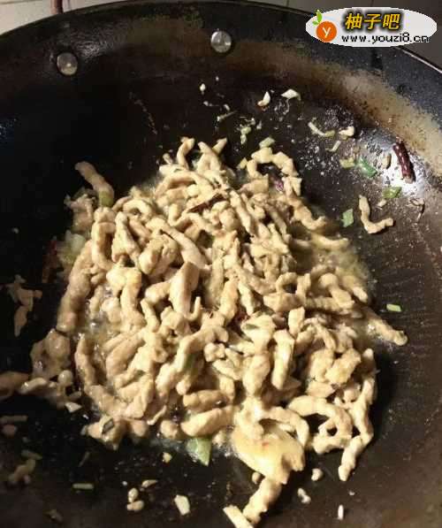 4放入肉丝,翻炒至变色