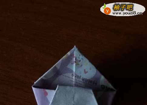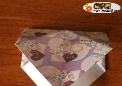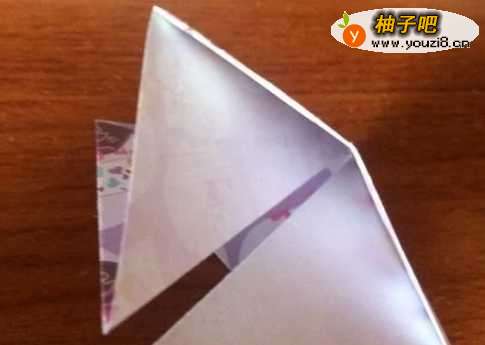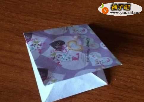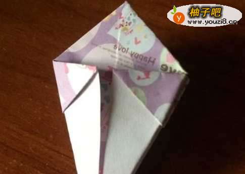 6之后将纸从下往上翻折,反面也如此。将翻上后的多余的部分塞进折缝中。
