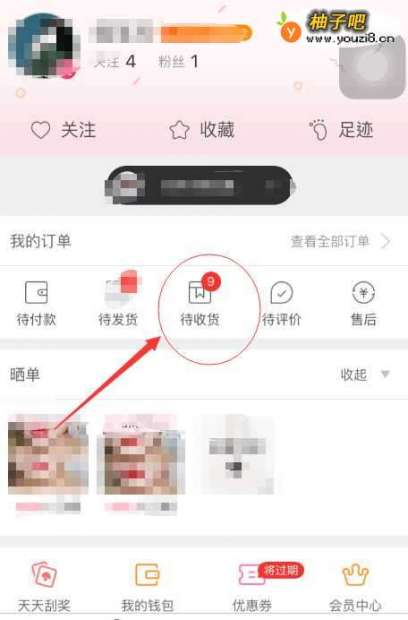 2在蘑菇街首页点击我的按钮,选择待收货按钮。