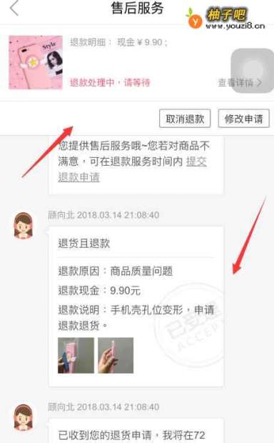 5在售后服务界面即可看到提交成功的退货且退款申请单,详细信息见下图。