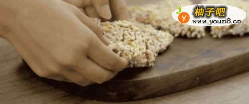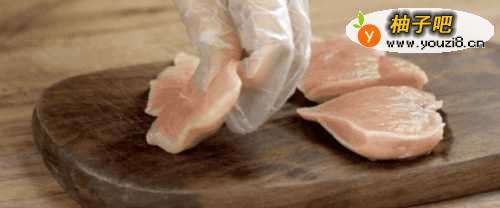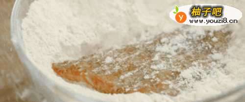 4腌制好的鸡胸肉,沾面粉、裹上蛋液。