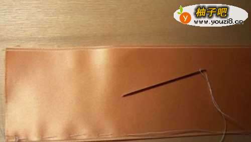 3缝好以后,从一端略微拉紧,让丝带有了皱褶,看起来更生动。