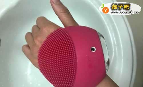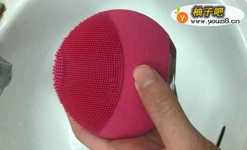3将洁面仪硅胶刷头部分放置在皮肤处,震动清洁皮肤。